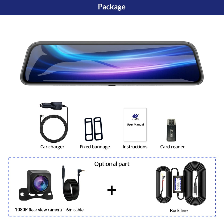9.66 Inch Touch Dash Camera: Stream Rear View Mirror Dvr