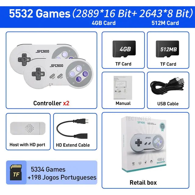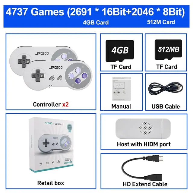 Dive into a world of nostalgia and endless entertainment with the SF900 Retro Video Game Console! This extraordinary game stick is packed with an impressive library of 1500/4737/5532 games, ensuring that classics from the 16-bit era of SNES are right at your fingertips. Whether you're reliving cherished childhood moments or discovering these timeless gems for the first time, hours of fun await.